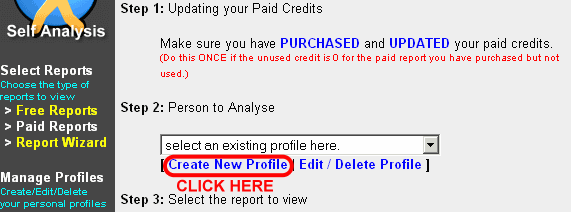 - Click on the Personal Self link, which opens up a Report Wizard on the right frame.
