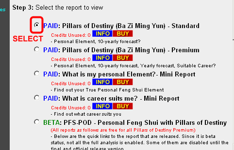 • Select the PAID: Pillars of Destiny (Ba Zi Ming Yun) - Standard